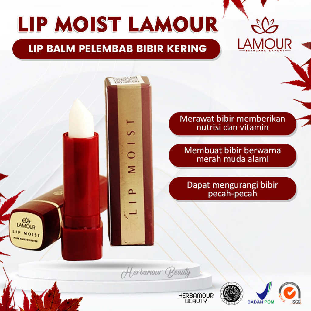 LIP MOIST LAMOUR merawat bibir memberikan nutrisi dan vitamin membuatnya berwarna merah muda alami...