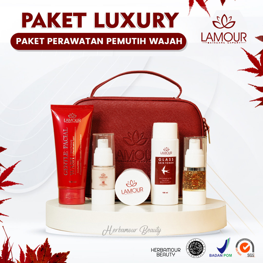 PAKET LUXURY LAMOUR dikhususkan untuk mengurangi flek hitam + susah putih serta kulit membandel...