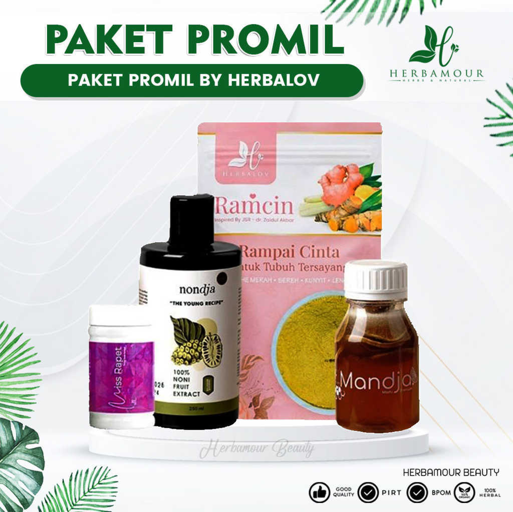 PAKET PROMIL HERBALOV Terdiri dari Ramcin 100gr, Nondja 250ml, Mandja 250ml, Miss Rapet 30 capsul...